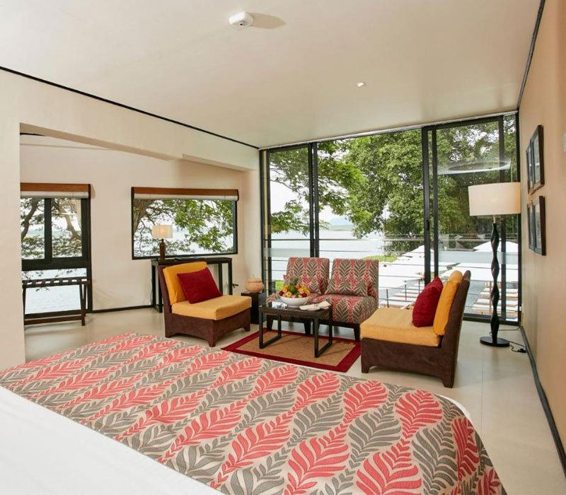 each room is equipped with a plush king-sized bed, premium linens, and a private balcony